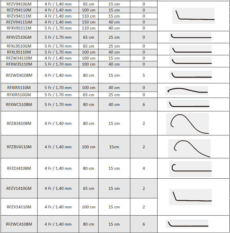 • Доступны специальные длины и изгибы, такие как 150 см прямой для реканализации нижних конечностей и Yashiro 3D для более легкого доступа к чревному артериальному стволу.