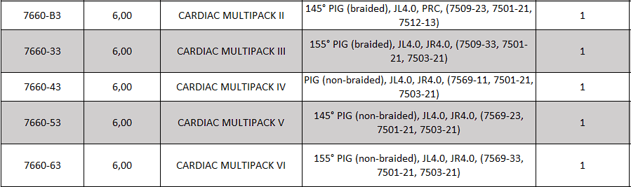 Набор диагностических катетеров для коронарографии Cardiac Multipack включает: