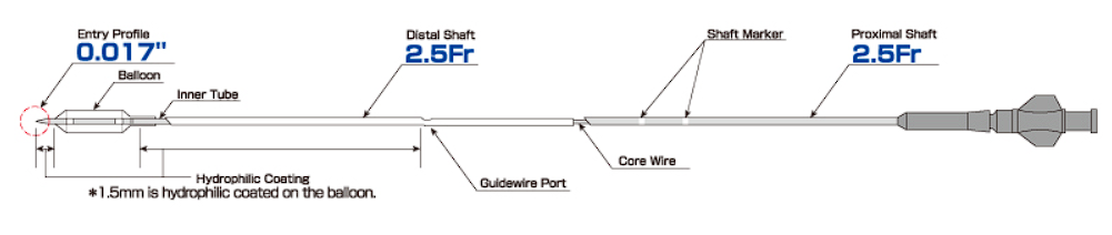 - Гидрофильное покрытие проксимальной части баллона – улучшает проведение, но не дает баллону проскальзывать.