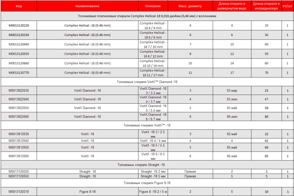 Портфолио толкаемых спиралей Boston Scientific 0.018'' (0.46 мм) предлагает широкий выбор различных конфигураций и форм, отвечающих даже самой сложной анатомии сосудистой сети.