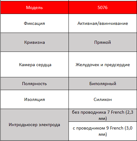 Электрод для кардиостимуляции CapSureFix Novus MRI SureScan модель 5076 предназначен для стимуляции и восприятия в предсердии или в желудочке.