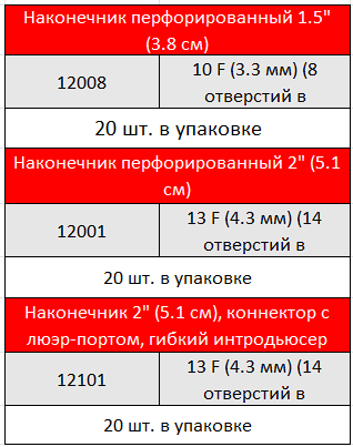 Левожелудочковые дренажи используются для прямого и непрямого дренирования левого желудочка и имеют перфорированный наконечник. Широкий выбор моделей с прямым, изогнутым или гибким корпусом, с нанесенными отметками глубины введения. Широкий выбор размеров для взрослых и детей. Модели с прямым корпусом поставляются с гибким или жестким проводниковым интродьюсером для облегчения постановки и проведения. Все дренажи поставляются с коннектором 1/4" (0.64 см) с или без люэр-порта.