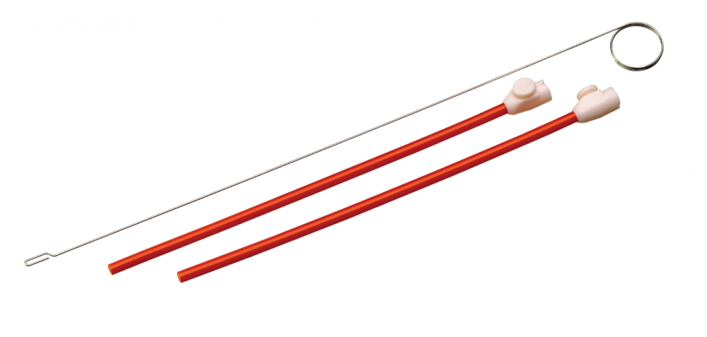 В наборы входят трубки красного цвета различной длины с фиксатором на одном конце. Шовная нить оборачивается вокруг фиксатора надежно удерживается, что позволяет обходиться без зажима. В каждый набор входит проволочная петля.