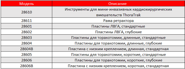 - Пластина модели 28605 наиболее часто используется для ретракции при обычной торакотомии.