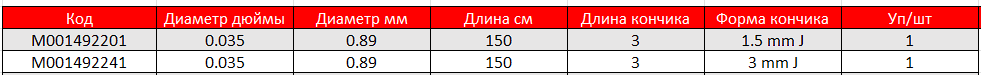 • Диаметр диагностического проводника: 0,035". Длина проводника: 150см.
