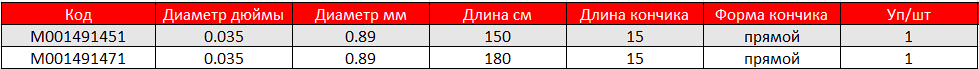 - Диаметр диагностического проводника: 0,035". Длина проводника: 150см и 180см.