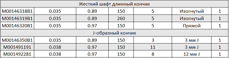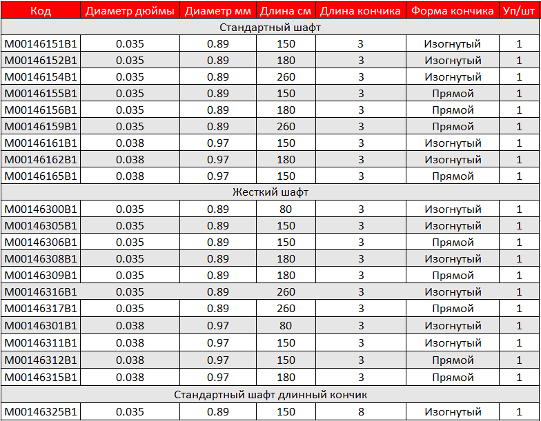 • Диаметр: 0.035” и 0.038”.