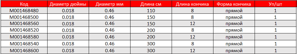 • Диаметр: 0.018”.