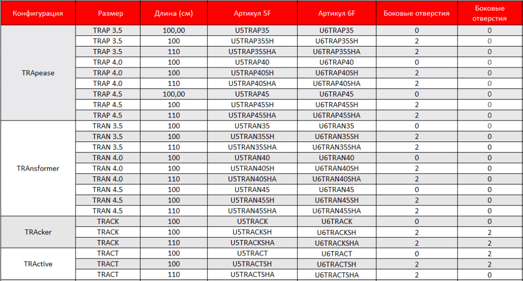 • Широкий выбор размеров и конфигураций