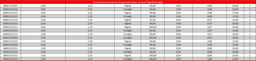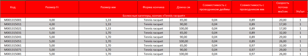 - Наружный диаметр: 4-5 F.