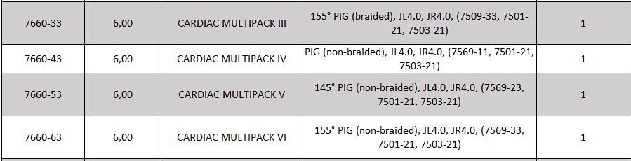 - Катетеры Performa Джаткинс правый JR4, JR5PRC, диаметр 4F, 5F, 6F, длиной 100 см.