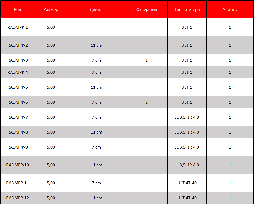 - Интродьюсер Prelud или Prelu Pro, диаметр 4F, 5F, 6F, длиной 7 или 11 см с проводником и дилататором.