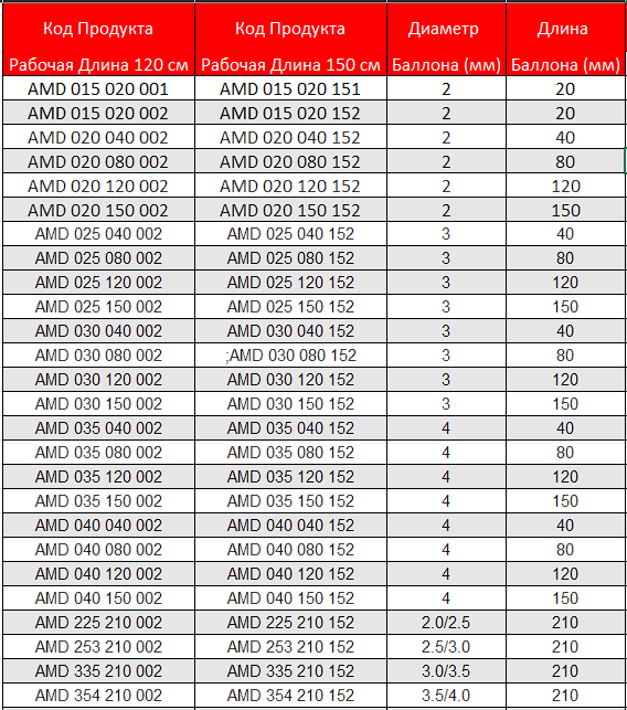 • Широкий размерный ряд (длины до 150 см, прямые и конические баллоны)