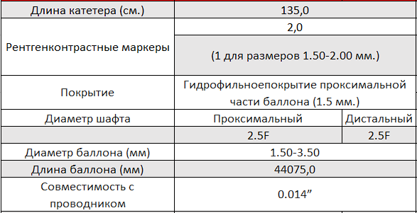 - Гидрофильное покрытие проксимальной части баллона – улучшает проведение, но не дает баллону проскальзывать.