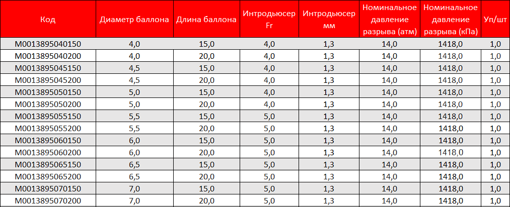 - 2 мм платино-иридиевые метки на концах баллона для контроля положения баллона во время флюороскопии