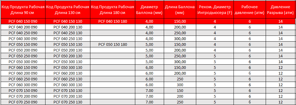 • Широкий диапазон длин (20–300 мм) и диаметров (2,0–7,0 мм) баллона