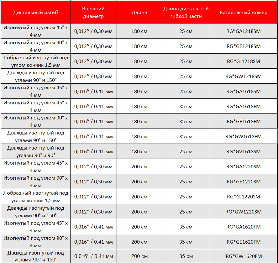 - Доступ в извитые или дистальные сосуды улучшен за счет минимальных диаметров дистального конца и использования разных форм для него.