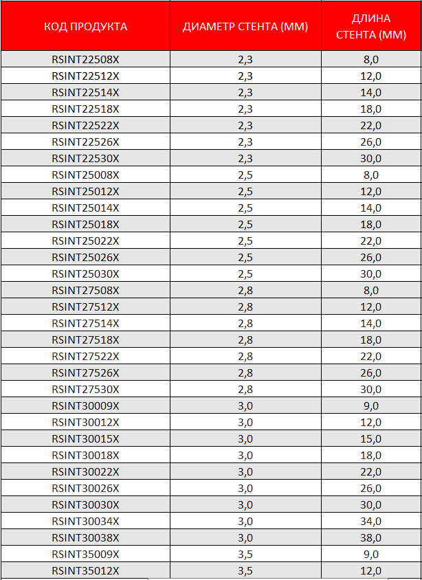 - Гладкие круглые балки стента обеспечивают легкое прохождение проводника и баллона в боковую ветвь