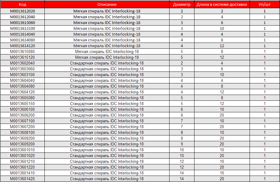 - Доступны два варианта жесткости: мягкая и стандартная. Позволяют подобрать оптимальную спираль для каждого вмешательства.