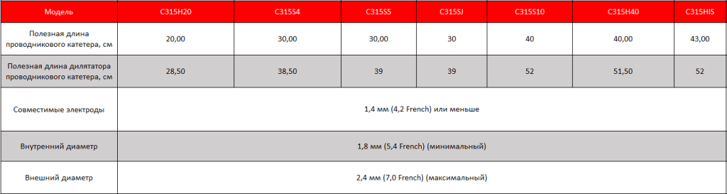 Доставочный катетер С315, варианты исполнения: C315S4, C315S5, C315S10, C315J, C315H20, C315HIS, C315H40