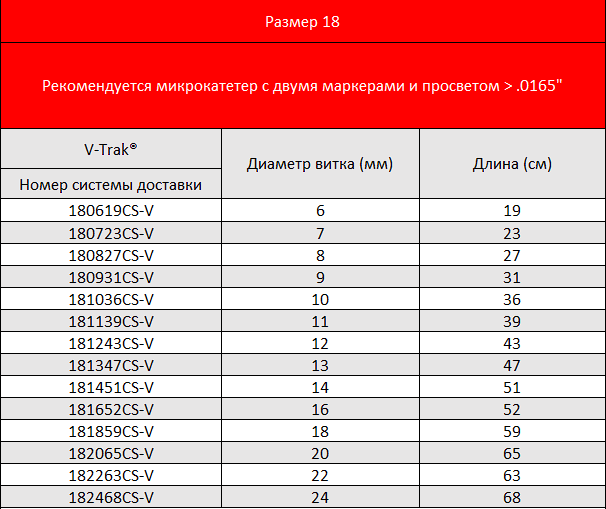 - Прогрессивное увеличение диаметра первых витков позволяет лучше контролировать раскрытие спирали в полости аневризмы.