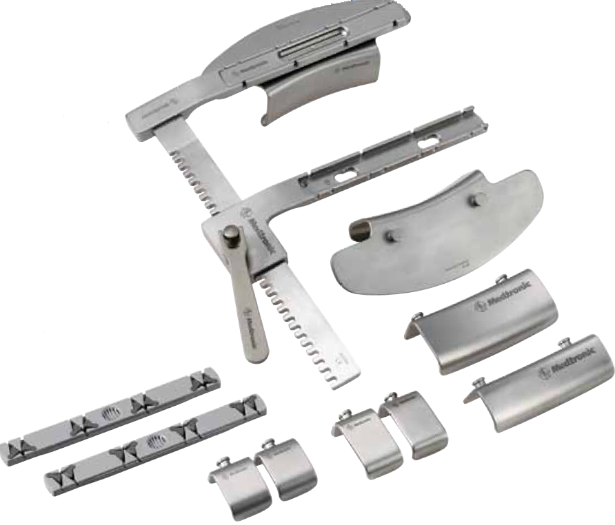 Ключевой компонент при медианной стернотомии, может быть использован при любых операциях на открытом сердце. Модульная система со сменными лезвиями для выполнения различных процедур у пациентов с разной анатомией. Сменные лезвия надежно фиксируются замками на раме ранорасширителя.