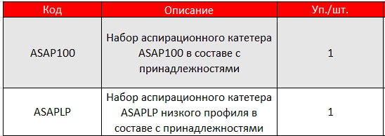 Аспирационные катетеры ASAP100 и ASAPLP предназначены для быстрого удаления свежих, мягких эмболов и тромбов из просвета артериальных сосудов.