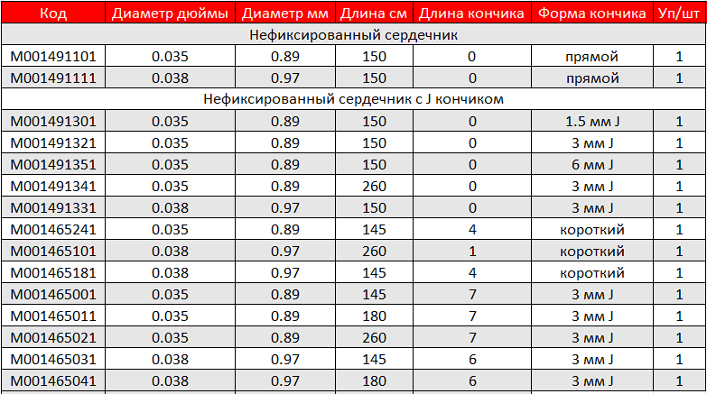 • Диаметров диагностических проводников: 0,035" и 0,038". Длина проводников 150см и 180см. Наличие проводников с прямым и J-изогнутым кончиком.