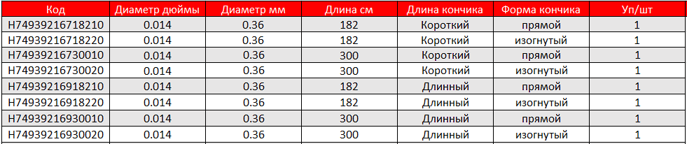 • Два варианта жесткости кончика 6 г и 8 г для прохождения стенозов и окклюзий.