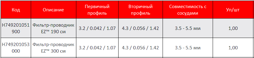 - Первичный профиль устройства 3,2F обеспечивает высокий уровень доставляемости системы FilterWire EZ™ в условиях извитого русла.